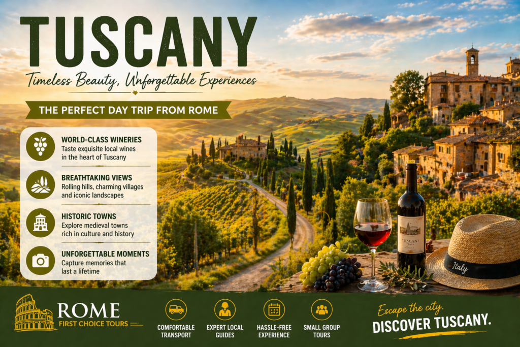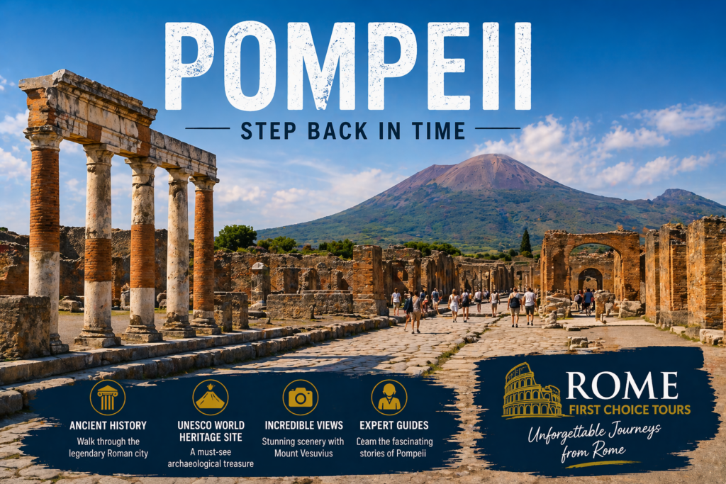 Book your day trip with Rome First Choice Tours and explore Pompeii, Amalfi, or Tuscany with ease.